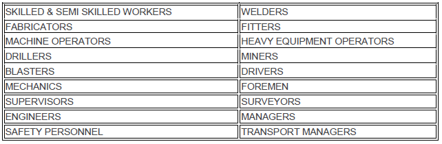 We have been providing, Engineers, Equipment Operators, Machine Operators, Mechanics, Miners etc for Iron, Copper, Zinc, Coal, Diamond, Gold, Silver Mines. Send Us an Enquiry Some of the Category of Manpower provided for this Sector are :