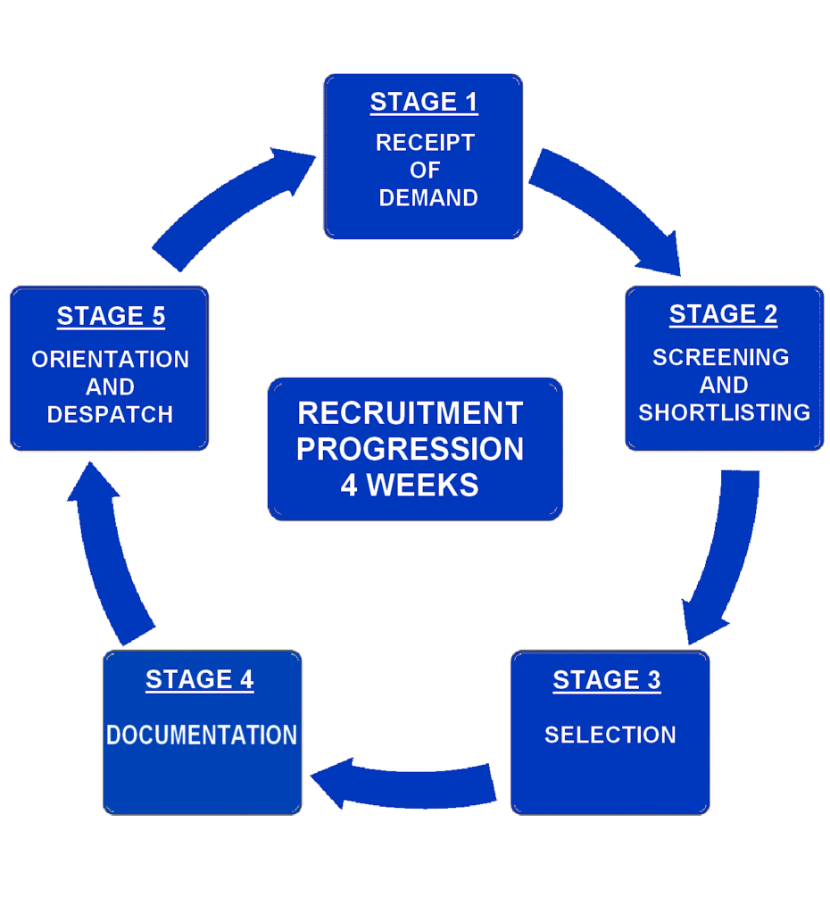 Stage 1: Receipt of Demand Once we receive a demand / requisition a competent staff member is assigned to look after the same. This stage envisages the precise understanding of the Client’s Requirement and further if required drafting of the Job Description. This ensures better quality of candidates. Necessary documents such as Power of Attorney (POA), Sample Employment Offer (SEO) and Demand Letter (DL) will be requested at this stage. We will then present a project plan to the client to ensure timely recruitment.